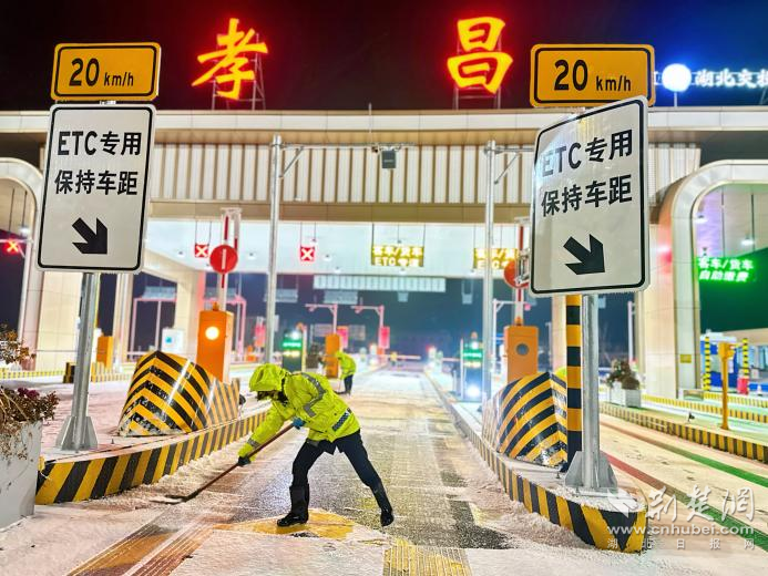 荆楚网(湖北日报网)讯(通讯员朱佳敏 温冰冰)1月20日,凛冬寒潮裹挟暴雪突袭孝昌,孝昌收费站气温骤降至冰点,路面迅速被厚雪覆盖,给道路通行带来严峻考验。面对突发冰雪天气,该站工作人员迅速启动应急预案,一场以“保畅通、暖人心”为目标的应急处置行动连夜展开。