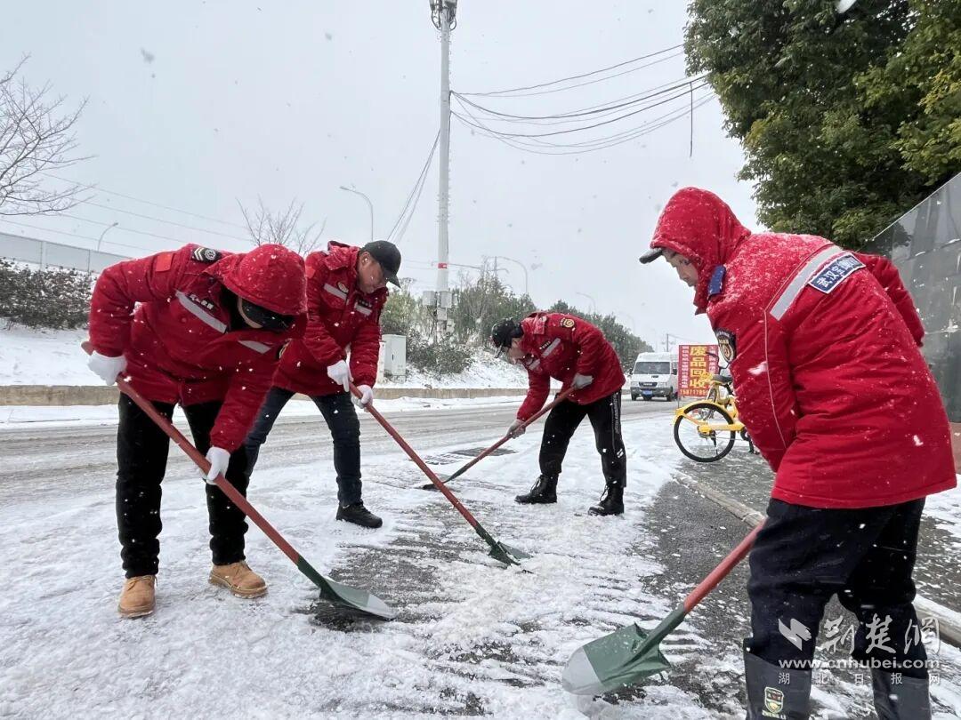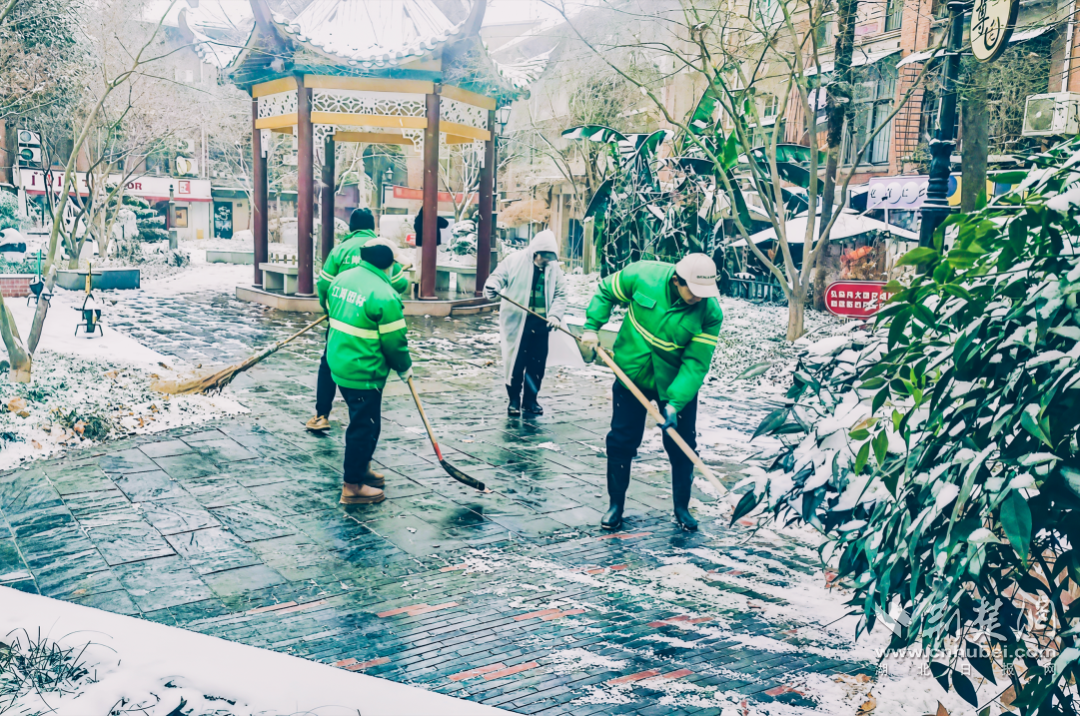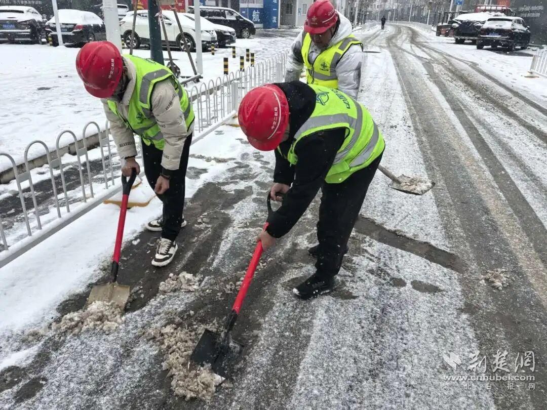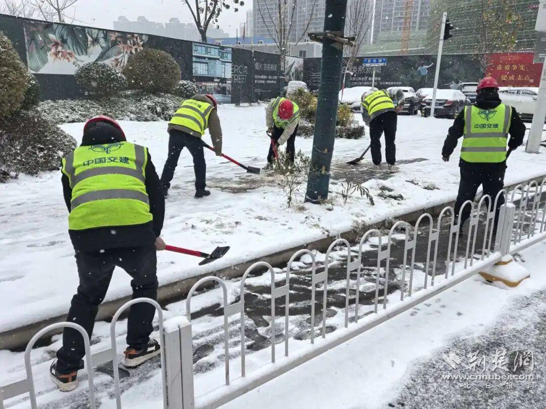 在市政建设一线,各重点项目以雪为令,星夜行动,在竹叶山转盘、中山大道、新春站点12号线联络线等重点路段及工地周边迅速开展清雪防滑作业,铺设防滑垫,力保交通要道畅通和施工安全。