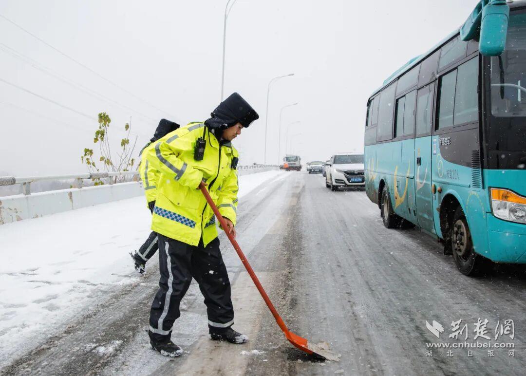 从主干道到校园门口,从交叉路口到社区出入口,公安民警及时铺设防滑垫,并主动清扫积雪,全力保障早高峰通行安全与校园、社区周边道路顺畅,用闪烁的警灯与坚实的行动,为市民铺就了一条平安温暖的出行路。