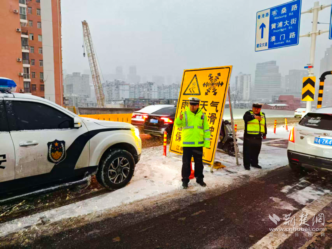为应对冰雪天气,江岸公安迅速启动预案,全力守护城市安全与畅通。警力彻夜值守于各重点路口、路段,在风雪中引导车辆、提醒行人。