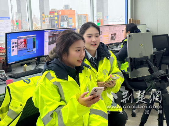 1月20日8时 荆州东管理所 两位主播正在进行路况直播。