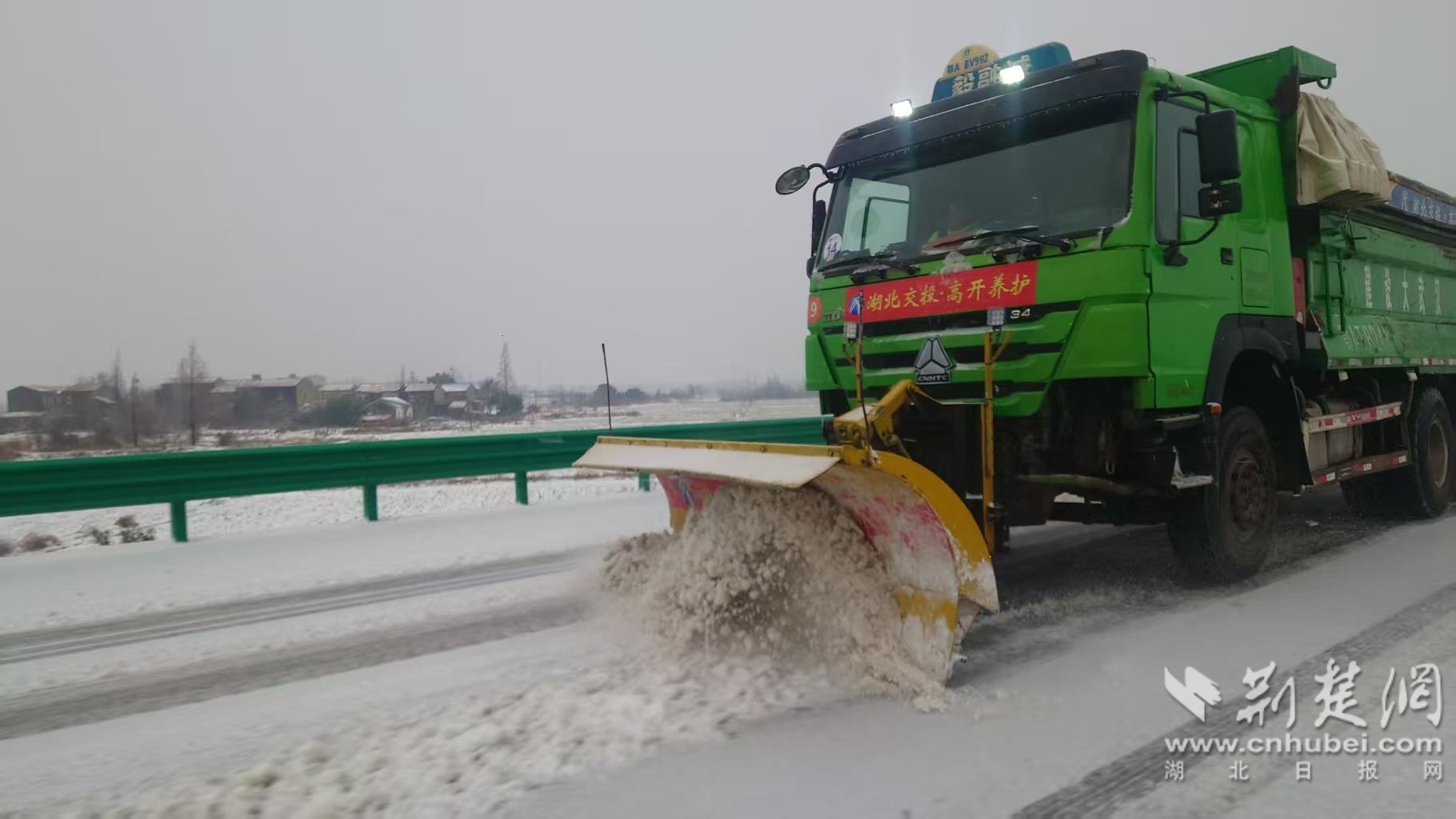 作业前,公司开展驾驶员安全交底培训,组建机械化作业编队,按“先桥梁后路面、先主线后匝道”优先级推进,在湖北京港澳高速公路珠京向1049坡道等20个易结冰风险点位,精准撒布液体融雪剂。夜间作业时,交警车辆“压速带道”,作业车辆亮灯梯队推进,全员规范穿戴防护装备,机械化作业覆盖率达100%。