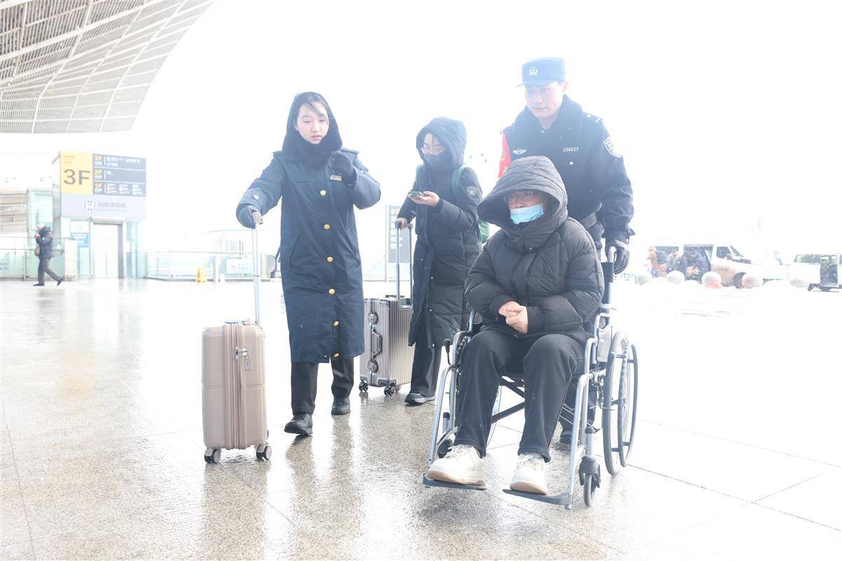 1月20日,武汉迎来2026年第一场雪。武汉铁路公安处武汉站派出所加强车站广场、进出站口等重点区域的巡逻疏导力度。民警在低温和湿滑路面上坚守岗位,及时引导旅客有序通行,提醒大家注意脚下安全,同时协助处理突发情况,全力维护旅客出行秩序,确保雨雪天气下的旅途更加安全顺畅。(湖北日报通讯员 熊振迪 王玉琪 摄)