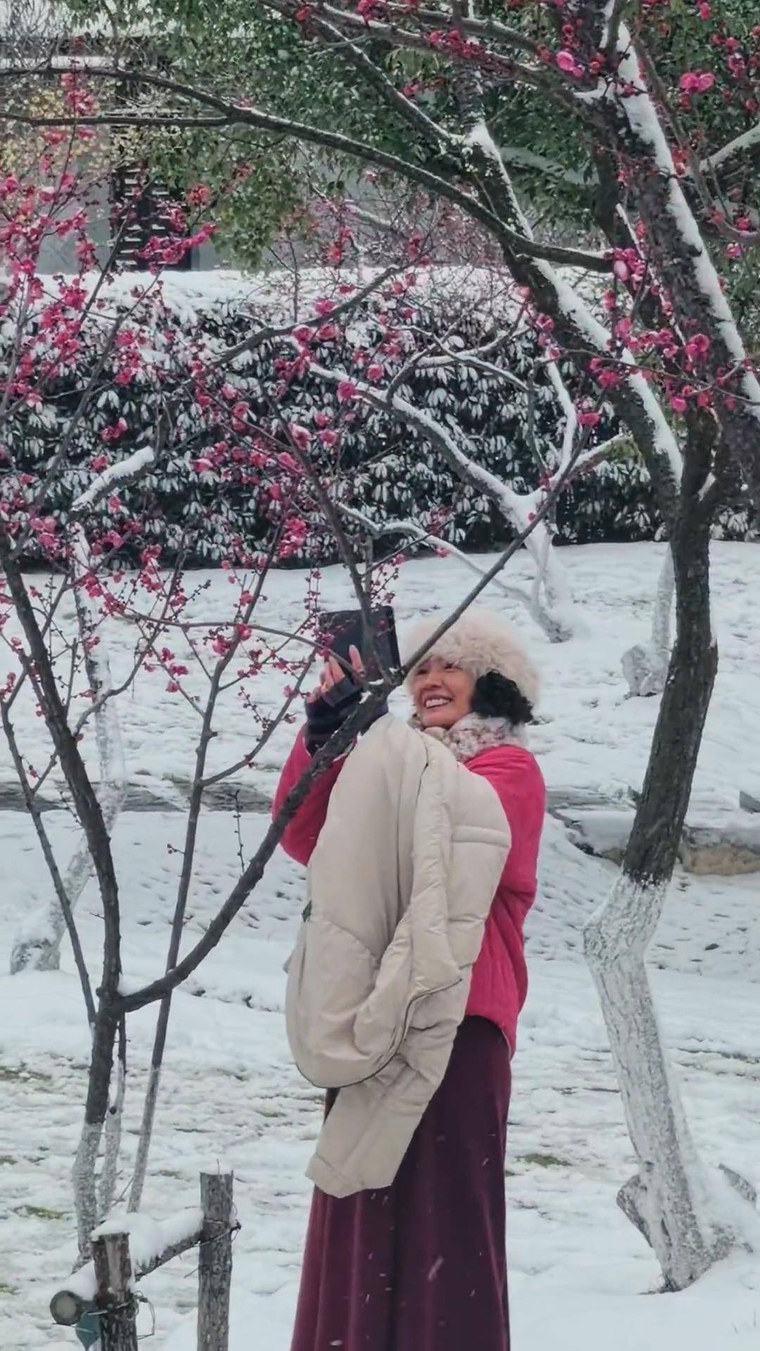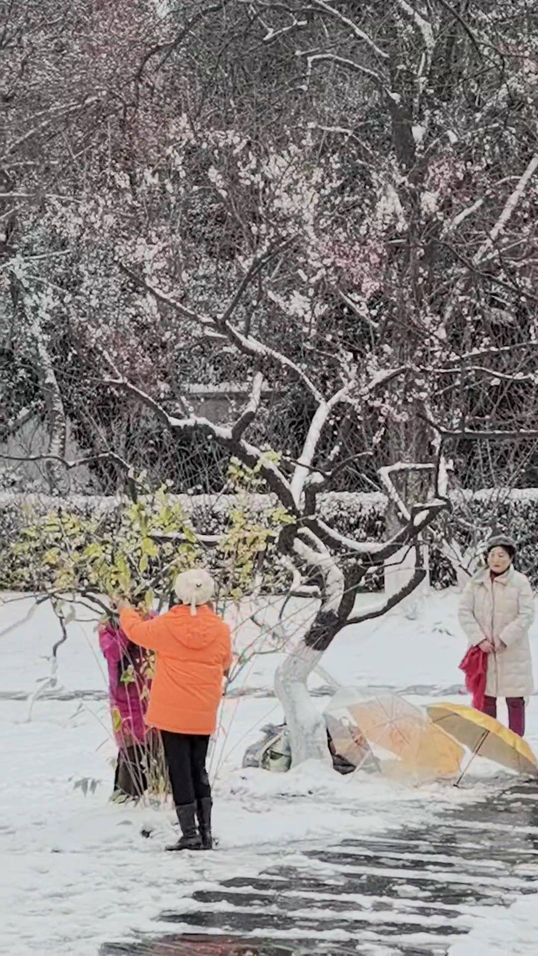 2026年1月20日,武汉的新年初雪准时赴约!漫天飞絮般的雪花簌簌落下,东湖梅园里的梅树瞬间披上银白外衣,直接把冬日氛围感拉满,引得大批游客专程冲过来打卡,解锁踏雪寻梅的限定浪漫。有人裹紧围巾在雪地里慢悠悠逛着,和枝头的梅花合影留念;有人蹲在梅树下,凑近了细嗅雪中的淡淡暗香;更有一群摄影爱好者扛着 “长枪短炮” 架起三脚架,要把这雪映红梅的绝美画面锁进镜头里。(湖北日报全媒记者 赵恒)