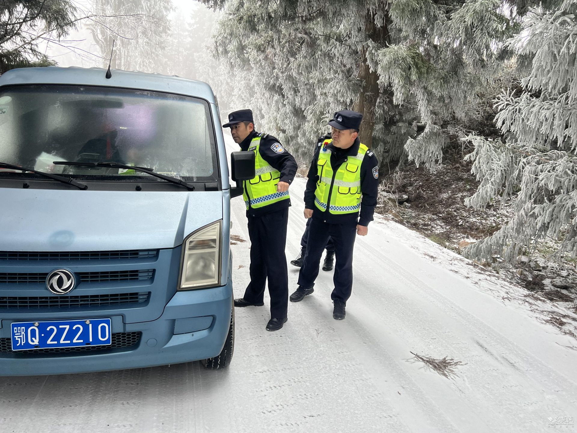 荆楚网(湖北日报网)讯(通讯员牟联祥、张雯)1月20日,素有“西部屋脊”之称的利川齐岳山巅银装素裹。民警田密一早驾驶警车在山上巡线,他一次次下车,俯身仔细查看路面结冰情况,车上警灯发出的光芒,在大雾紧锁的冰雪山巅成为一道醒目的“安全坐标”。