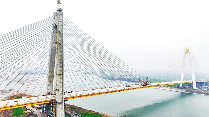 1月18日,当枝松高速公路控制性工程松滋河特大桥顺利合龙,为当枝松高速今年全线建成通车奠定坚实基础。松滋河特大桥连接枝江市百里洲镇与松滋市老城镇。当枝松高速是我省综合交通“十四五”规划重点项目,建成通车后,将打通“宜荆荆”1小时高速圈。 (视界网 刘卫东 摄)