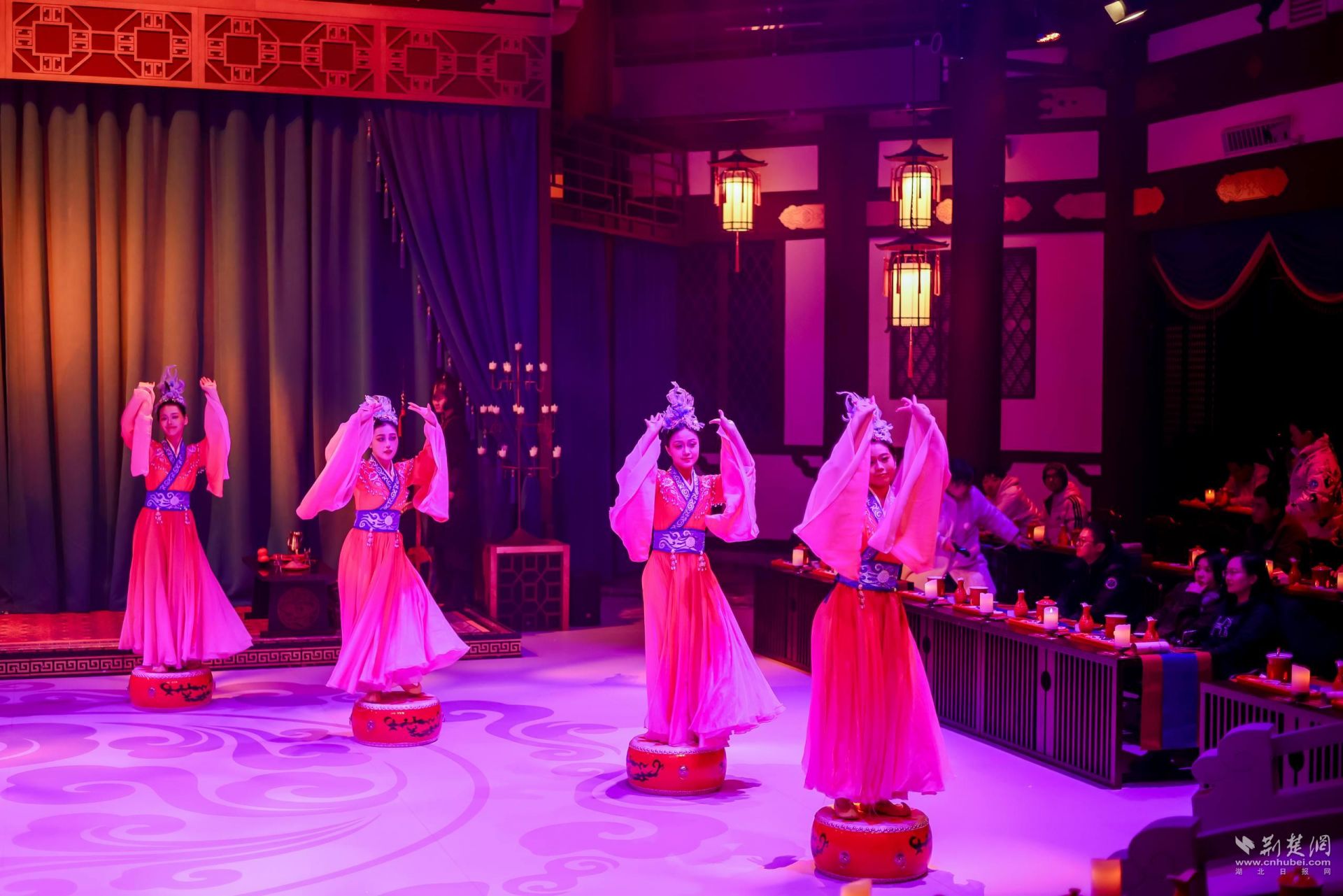与此同时,一层沉浸式剧游空间正持续开放预约。核心项目“三国群芳宴”以三国文化为核心,打造涵盖剧情互动、主题舞剧与荆楚美食品鉴的沉浸式餐秀体验。游客通过“知音文化旅游区”小程序预约后,可换装进入场景,与张飞、黄月英、华佗等NPC互动,参与三国市集逛游、游戏解谜等环节。每日17:30起,五幕主题舞剧依次上演,融合《洛神赋》、鱼灯舞等经典舞段,每段演出后更配有鱼糕、黄陂三鲜等对应主题的楚菜美食品鉴,全程约2小时,让游客在味觉与视觉中穿越千年。