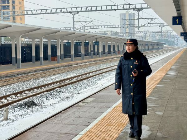 检票口前,客运员冯丽莹面对匆忙赶车的旅客,始终保持耐心与温柔。“最近两天雨雪天气,很多旅客怕赶不上车,进来都很匆忙。”冯丽莹说,她会先提醒旅客不要着急,避免滑倒或遗漏物品,再快速指引检票口位置,同时耐心解答首次出行旅客的各类疑问。让她难忘的是,今天早上不少旅客进站时衣服都被大雪打湿了,“我们会告知他们可以去洗手间吹干衣物,看到旅客们露出感动的笑容,觉得所有的辛苦都值得了。”