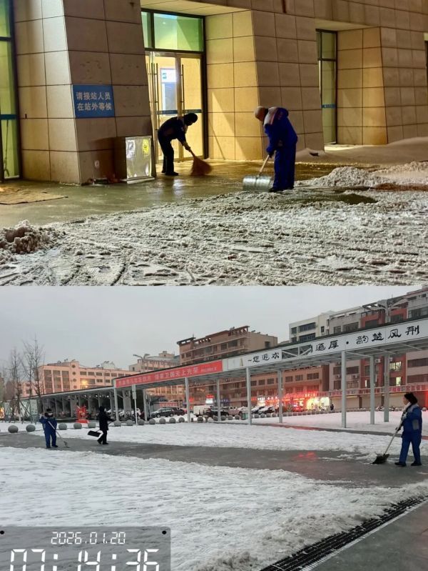 除了各岗位的细致服务,除雪保障人员也通宵达旦坚守责任区域,在寒风中挥舞工具,与厚厚的积雪和冰冻展开拉锯战,只为扫清每一处安全隐患。