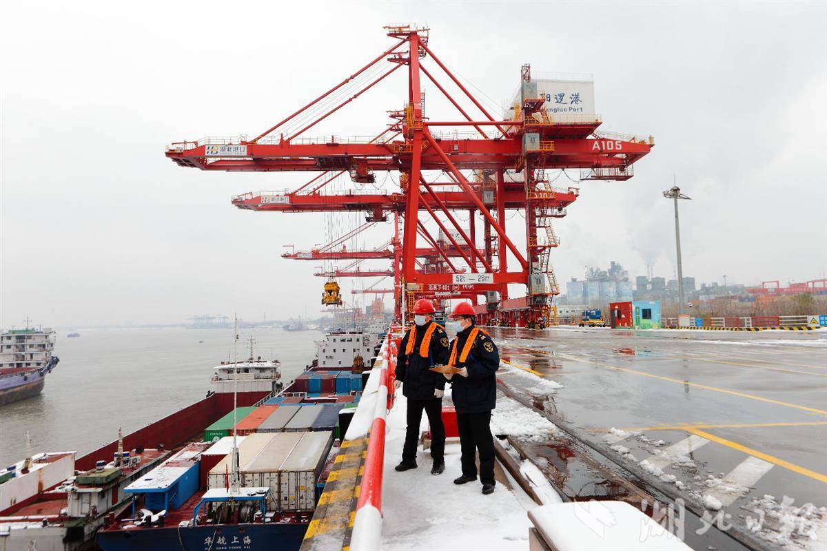 武汉新港海关关员现场监管直航进口货物。
