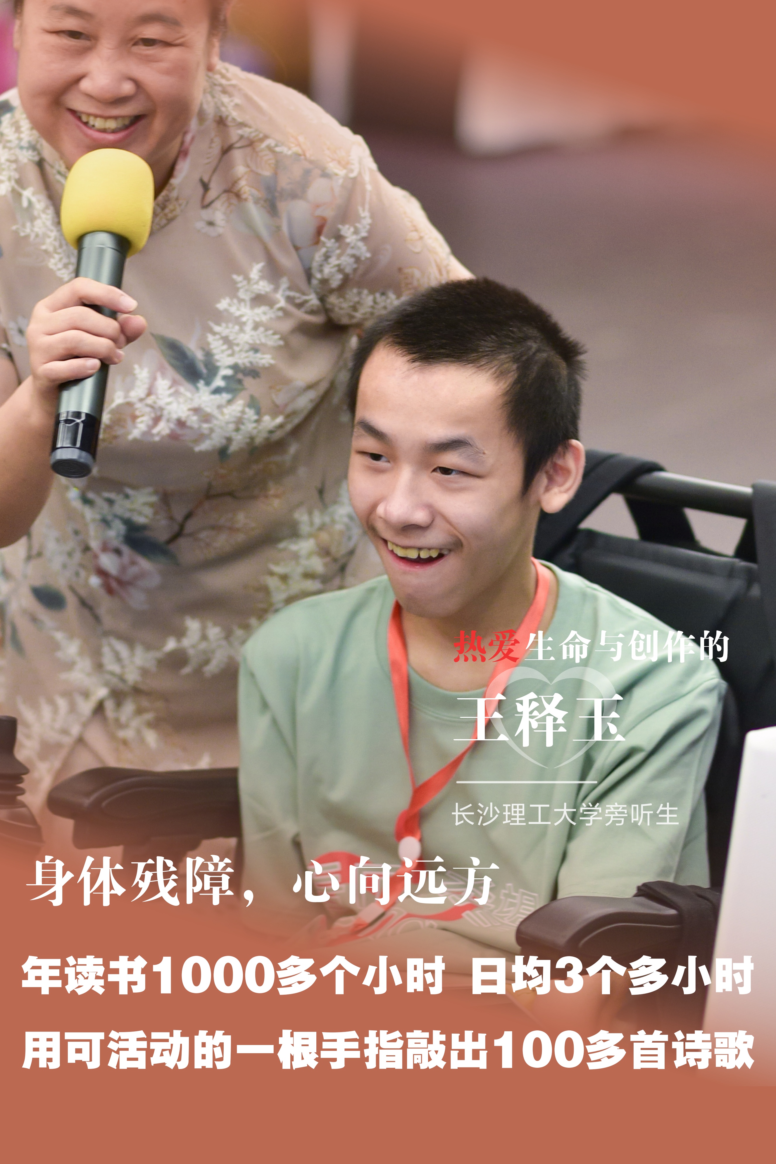 纵然出生时因窒息缺氧脑细胞损伤,成为一名脑瘫患者,王释玉也从未停止书写生命的赞歌。