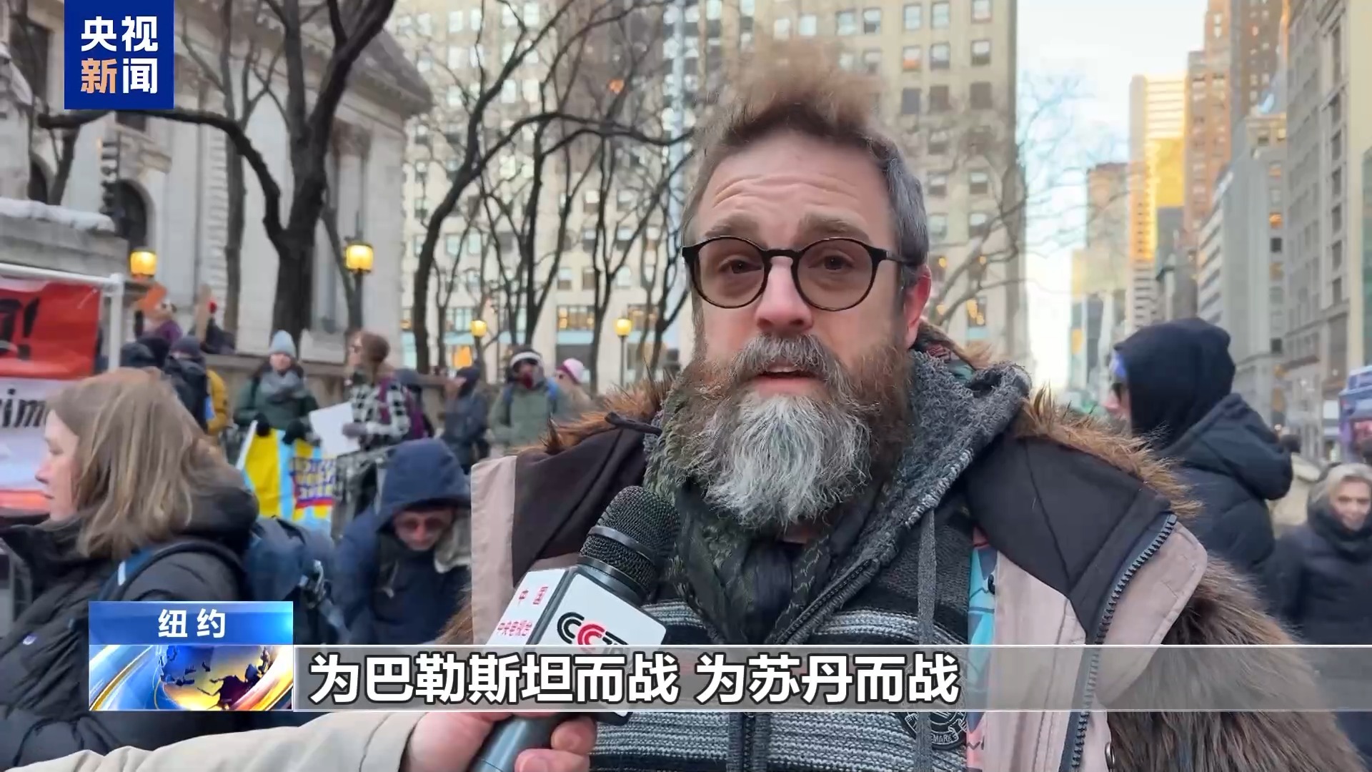 央视记者 徐德智:现在纽约的气温是零下7摄氏度,但是我身后仍有数百人而且是越来越多的人聚集在纽约公共图书馆前,表达对本届美国政府系列政策的不满。这些政策既包括移民执法局在内的国内政策,也包括美国政府一系列违反国际法的行为。他们希望本届美国政府可以更多聚焦在民生、教育、医疗等一系列民众关心的问题上面。