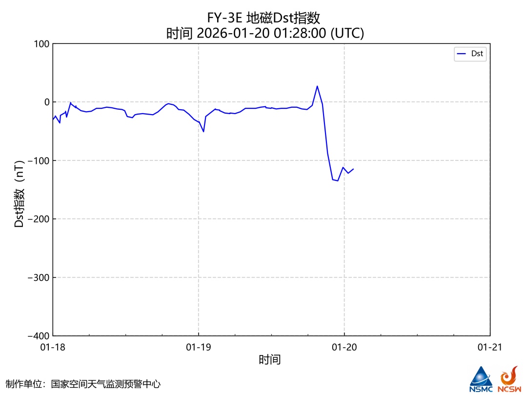 风云三号E星在太空也探测到此次地磁活动,随着磁暴的开始,地磁指数的数值快速下探。