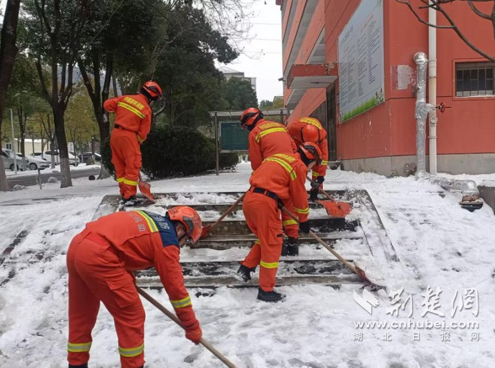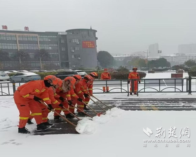 荆楚网(湖北日报网)讯(记者林杉 通讯员陈克茂 杨子烨)1月20日,积雪覆盖了江夏一中校园。湖北消防救援机动总队宜昌支队宜昌大队主动驰援,携带专业除雪设备抵达学校,在风雪中为师生清理通道,保障安全。