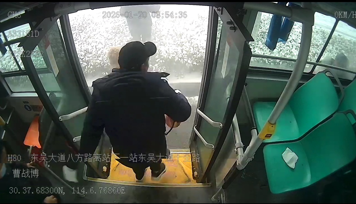 湖北日报讯(通讯员余利军、张望、曾婉君)2026年1月20日清晨,武汉遭遇今冬最强寒潮带来的首场大雪,全城银装素裹的同时,路面结冰也给交通出行带来严峻考验。武汉公交H80路驾驶员曹战博,在执行运营任务途中,果断救助一辆引擎盖冒烟的小轿车,用果敢行动在寒冬中传递出温暖力量,赢得全车乘客点赞。