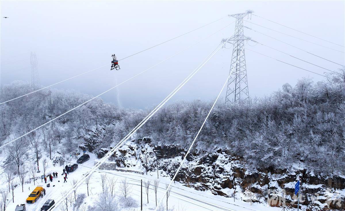 1月20日,在保康后坪镇蜡烛山村,110千伏翁天一回42-43号塔导线上方,一台灵巧的除冰机器人正沿着覆冰的导线稳步前行,所过之处冰层被逐层剥离,簌簌抖落。这台除冰机器人搭配远程控制、自主导航及制动功能,速度是人工十倍,无需登高断电,实现“不停电、不登高、不中断”的智能防护,它已成为守护电网安全的新一代智能战士。(视界网 王虎 摄)