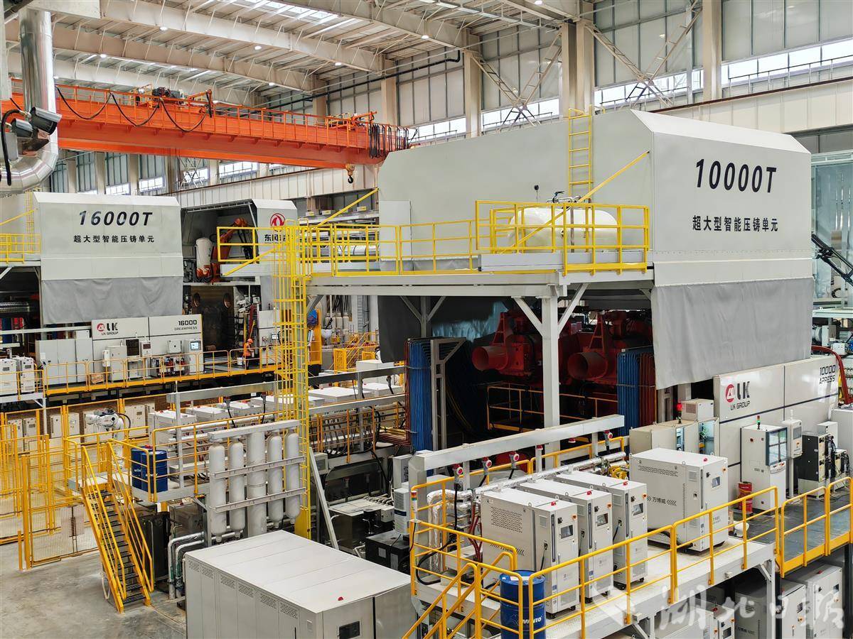 这座占地面积达4.7万平方米的工厂,于2024年11月正式开工建设,2025年8月完成主体厂房竣工验收。厂区内,矗立着两台堪称“工业巨无霸”的机器——16000吨与10000吨的压铸机。其中,16000吨压铸机为国产自主设计制造,这也是目前行业内最大吨位的一体化压铸工厂。