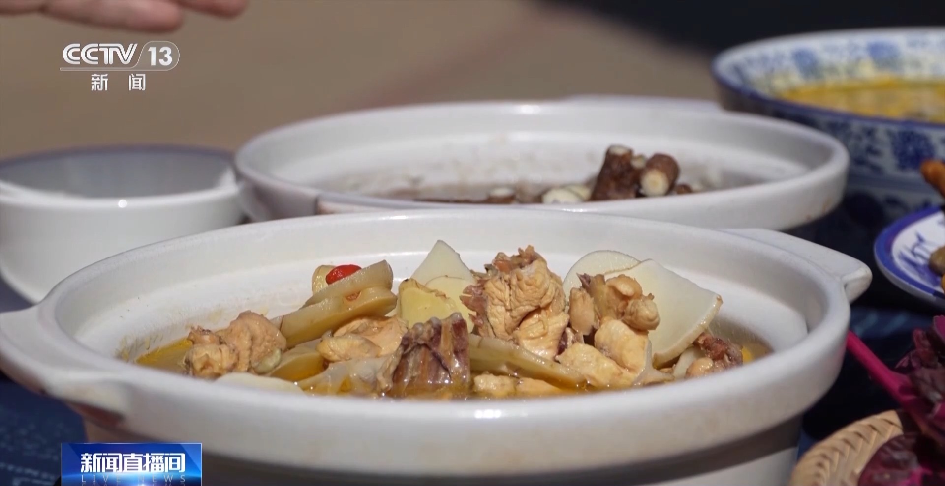 除了长知识,来到百草村,地道美食可不容错过,这里有黄精炖鸡、当归羊肉等。