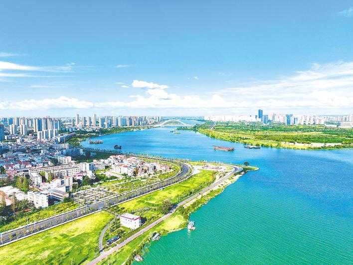 汉江奔涌,古城襄阳日新月异。(湖北日报全媒记者 赵怡然 摄)