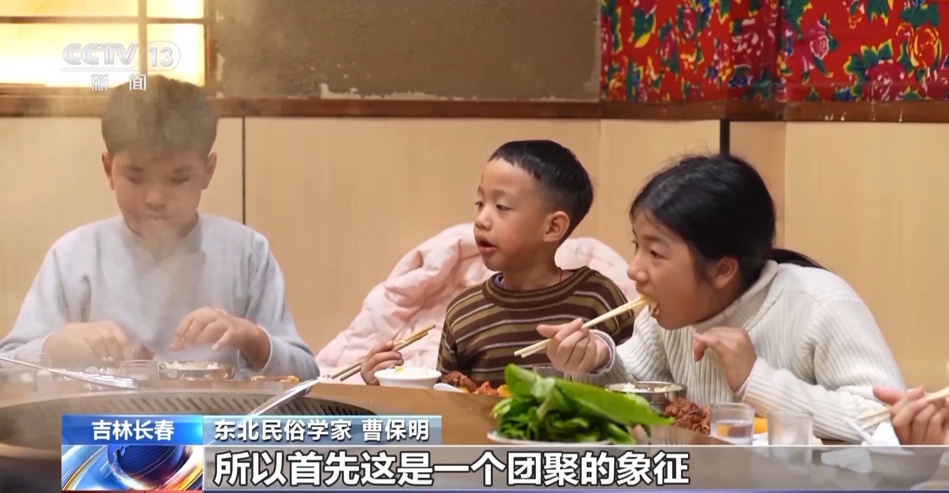 东北民俗学家 曹保明:它是来自东北民间久远的历史,北方民族叫铁锅炖,实际指一家人围着这一个锅来生活,形成一家人的生活的氛围,所以首先这是一个团聚的象征。第二个概念,铁锅炖实际是北方民族生活智慧的发现,既省柴火,同时又能够把各种味串在一起,体现了生活的和谐。