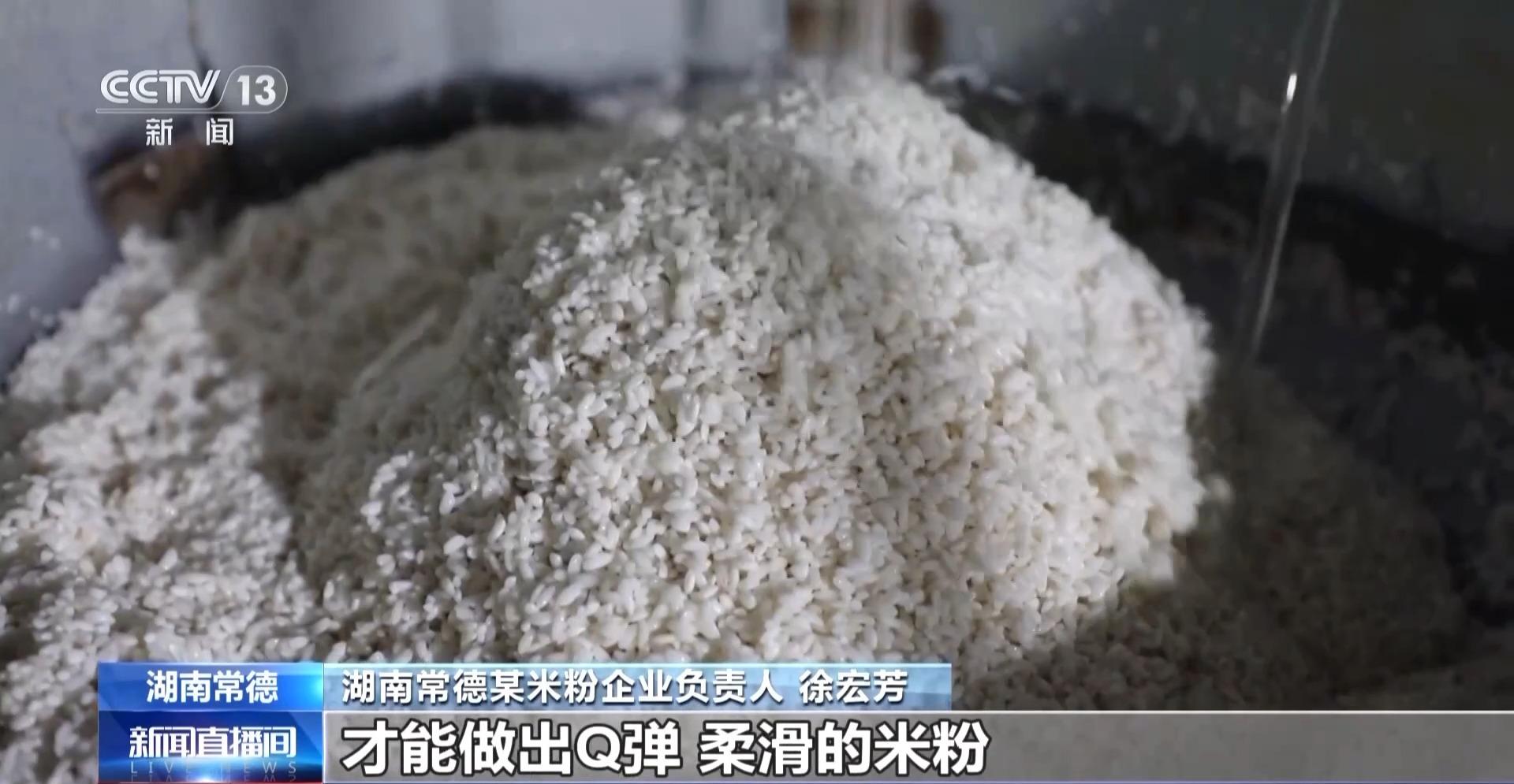 湖南常德某米粉企业负责人 徐宏芳:我们鲜湿米粉通常在本地进行销售,48小时的保质期,24小时基本都能销售完。我们做常德米粉是非常有讲究的,必须采用早籼米才能做,直链淀粉要达到25%左右才能做出Q弹、柔和的米粉。