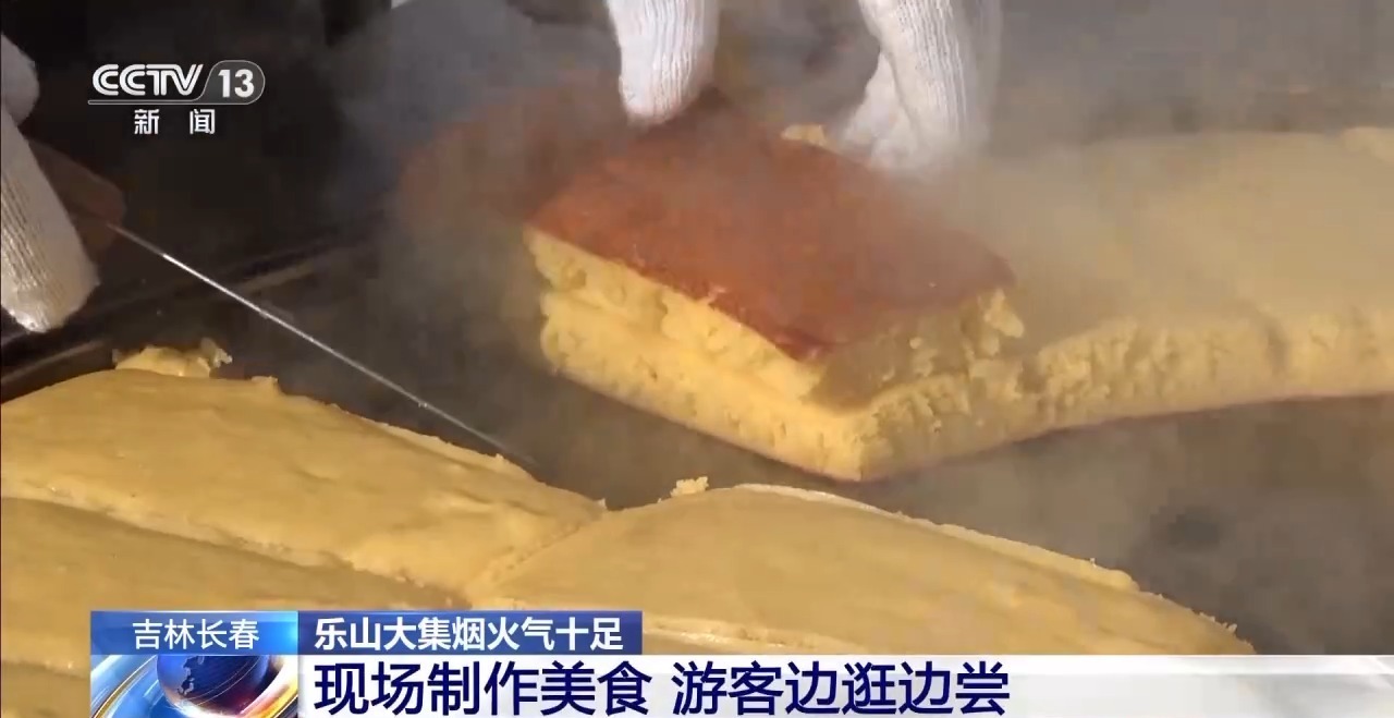 逛大集怎么能少得了美食。美食区里,刚出锅的苞米面大饼子,金黄软糯。摊主说,他一早上已经卖出去了5锅,收入超过600元。这些儿时的东北特色美食,每一样都满满的情怀,不少游客边吃边逛,氛围感直接拉满。