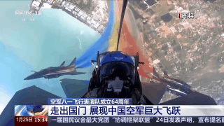 军事评论员 张学峰:中国空军八一飞行表演队是中国空军的闪亮名片,是外界观察中国空军的窗口,它以特有的方式,用独特的飞行语言来展现中国空军的训练水平和作战水平,作为和平使者、文化使者、友谊使者,传递守望和平、守护安宁、见证合作美好愿望。