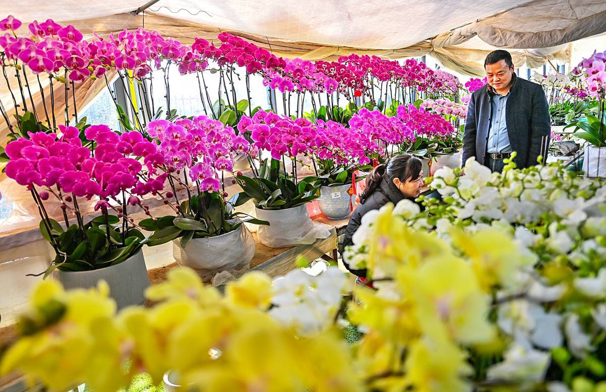 1月23日,记者在江夏区花博园看到,蝴蝶兰被扎成小型盆景,北美冬青长得高大如树,杜鹃花扎成造型独特的盆景,这里的创意花卉成了消费新宠。各式年宵花齐开盛放,消费者俯身细嗅、抬手轻抚,认真挑选着心仪的年宵花。新春的年味,便在这花香与欢闹声中,愈发醇厚浓郁。(湖北日报全媒记者朱熙勇摄)