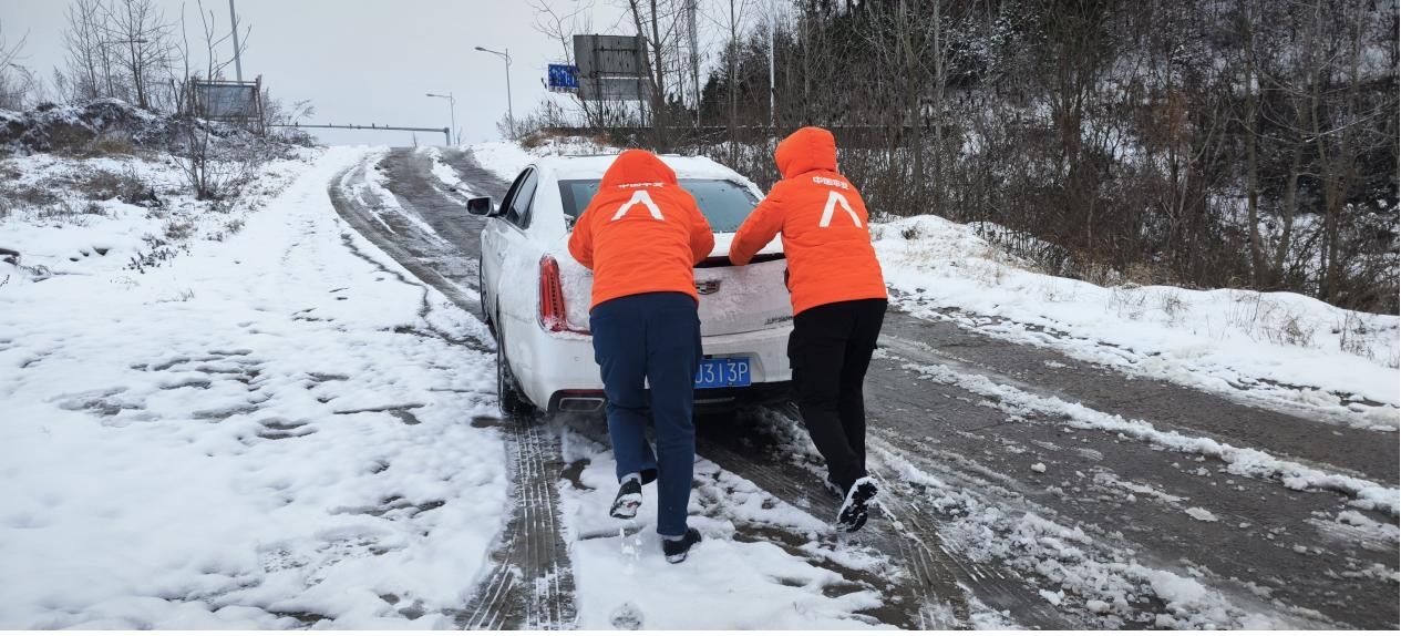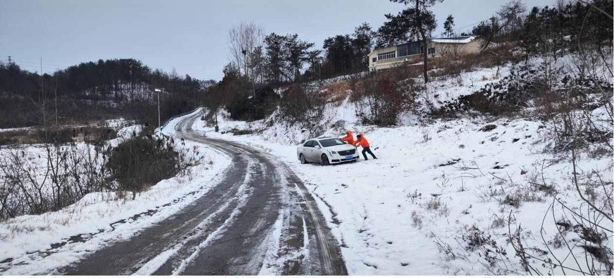 风雪无情,平安有爱。在一线抗灾服务途中,中支查勘员王飞罡、黄旭东执行查勘任务时,途经一处结冰路段,发现一辆私家车因路面湿滑打滑陷入路边沟渠。二人毫不犹豫停车上前,不顾寒风积雪与路面泥泞,凭借专业经验与应急技能,合力推车、清理车轮周边积雪冰块,成功协助车主李先生将车辆驶出困境。车主李先生对二人主动援手、热心服务的举动连连称赞,直言“风雪天里,平安人的专业与温暖太给力了”。