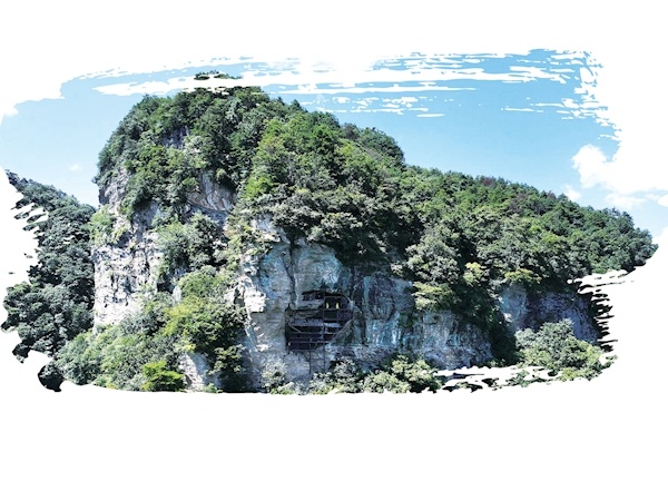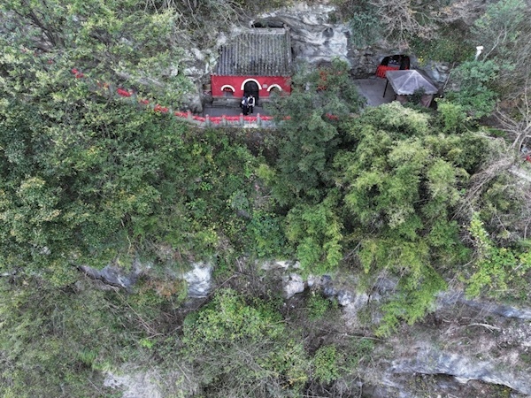 人迹罕至的武当山天仙岩悬挂在刀削斧劈般的岩壁上。记者朱江摄