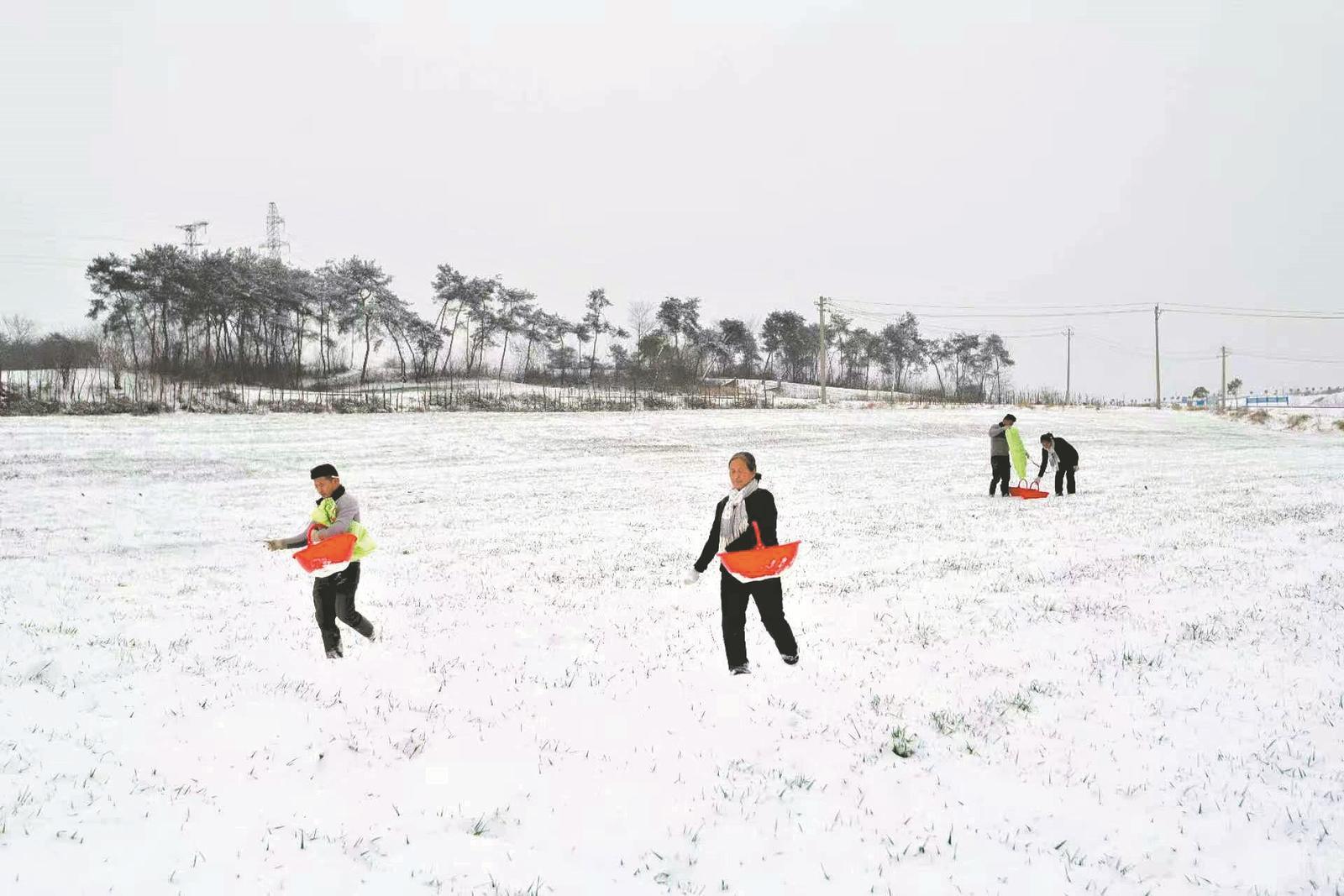 连日来,在老河口市光化办查营村的麦田里,村民们趁着雪后土壤墒情良好,踩着没过脚踝的积雪,在麦田里施撒化肥,为今年夏季的增产丰收夯实基础。