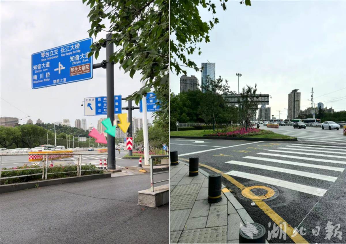 而就是这样一个连接长江大桥、江汉桥、鹦鹉大道和琴台大道的路口,在2025年秋天悄然发生变化。周阿姨惊喜地发现,骑车的路上有清晰的标线,护栏也将汽车道隔开了,过街时会有可语音播报的信号灯提醒安全。现在她说:“路好认了,心也安了。”