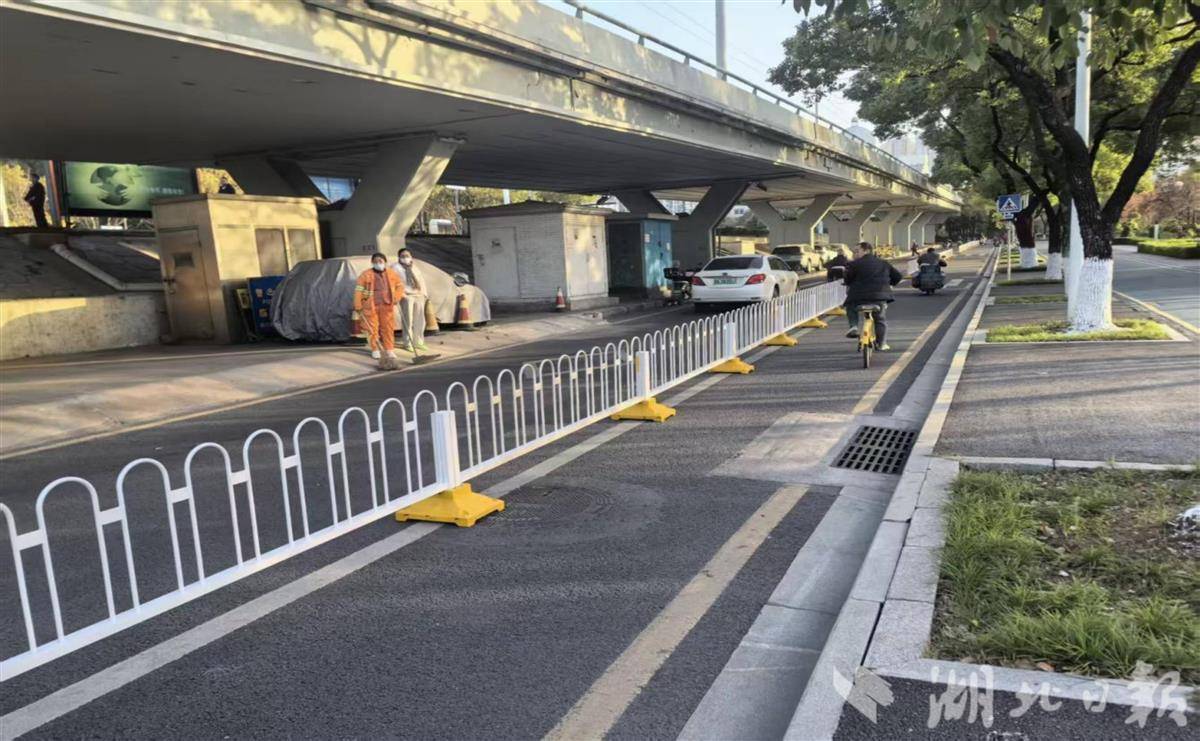 “我们测算过,在保证通行的前提下,每压缩0.3米机动车道,就能为骑行争取到一份便利和安全。”参与设计的交警罗权介绍道。同时,汉阳大队协调迁移辅道上影响通行的树木,并加装物理隔离护栏,彻底消除慢行通道上的“断点”和“绊脚石”。