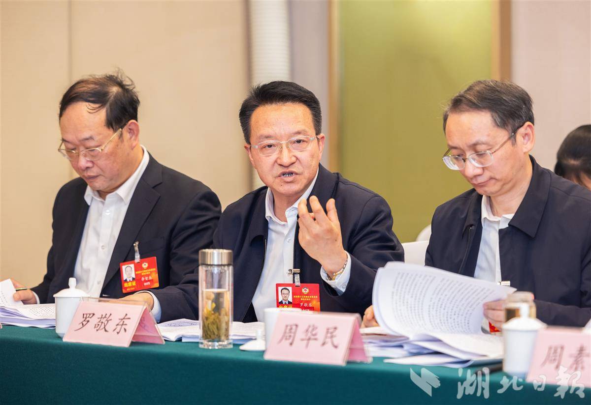 1月27日,在中国民主促进会小组会议上,省政协委员周华民(中)发言。(湖北日报全媒记者 薛婷 摄)