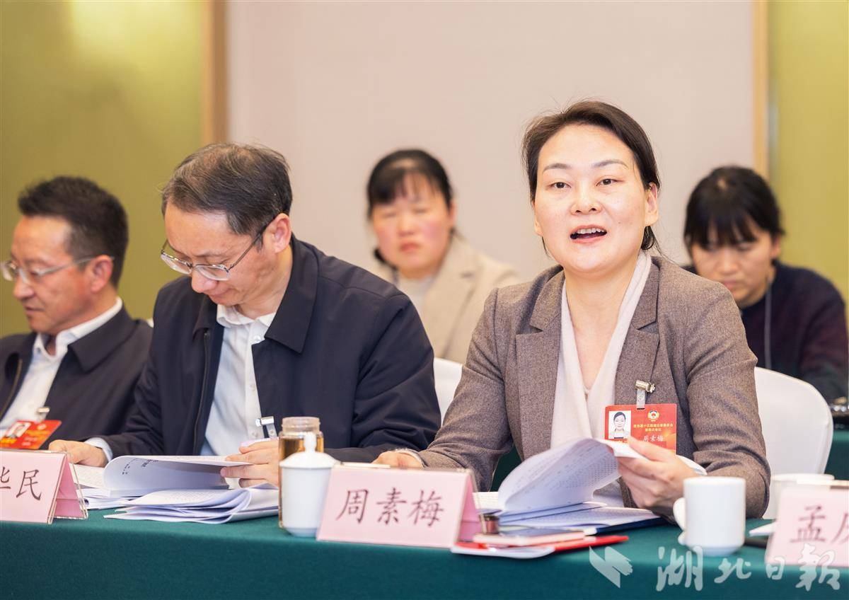 1月27日,在妇女联合会小组会议上,省政协委员曾淑琴(中)发言。(湖北日报全媒记者 薛婷 摄)