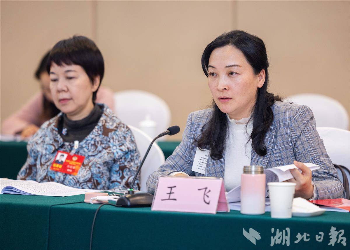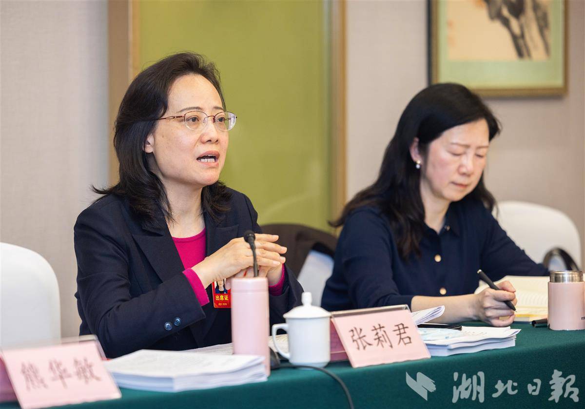 1月27日,在妇女联合会小组会议上,省政协委员张莉君(左)发言。(湖北日报全媒记者 薛婷 摄)