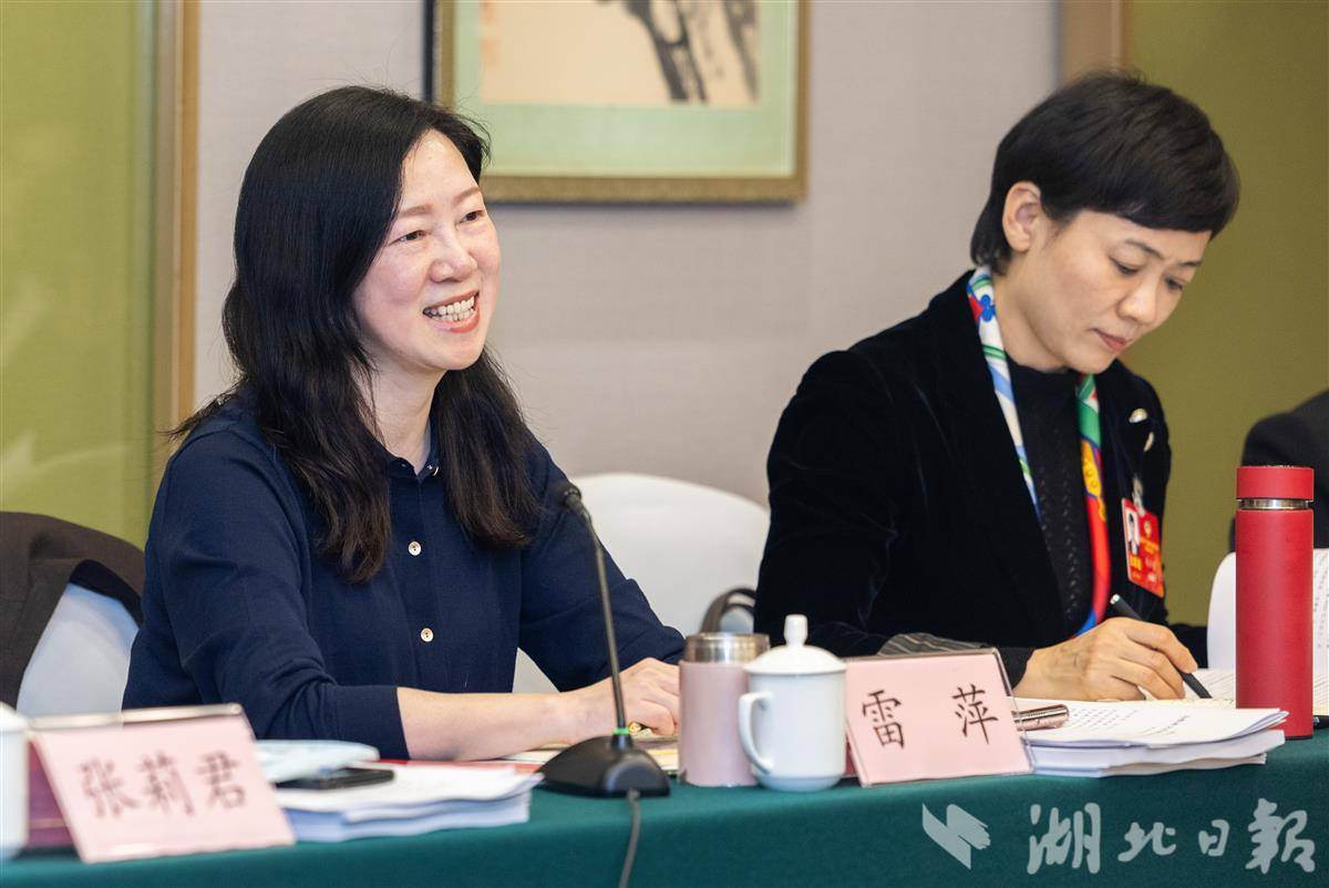 1月27日,在妇女联合会小组会议上,省政协委员雷萍(左)发言。(湖北日报全媒记者 薛婷 摄)