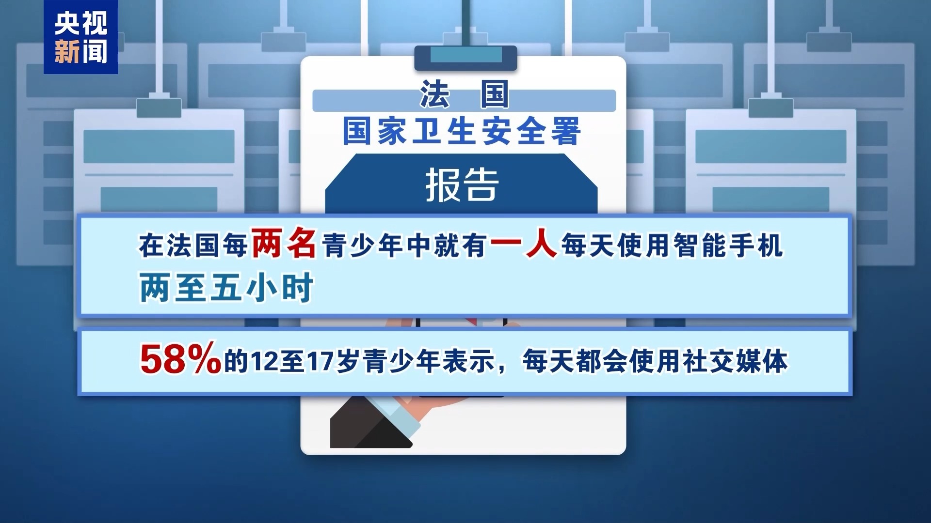 据法国国家卫生安全署本月发布的一份报告称,在法国每两名青少年中就有一人每天使用智能手机两至五小时。58%的12至17岁青少年表示,每天都会使用社交媒体。这份报告以及精神病学专家都指出,社交媒体使用在青少年中引发多重危害,包括网络霸凌会引发心理健康问题等。