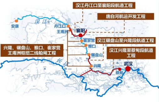 以汉江雅口枢纽二线船闸开工为代表的“三船闸一航道”项目,是解决汉江襄阳以下航道通航能力的关键项目。“三船闸一航道”指的是汉江雅口、崔家营、碾盘山枢纽二线船闸工程,以及汉江碾盘山至兴隆段航道整治工程(二期),4个项目总投资达53,1亿元。