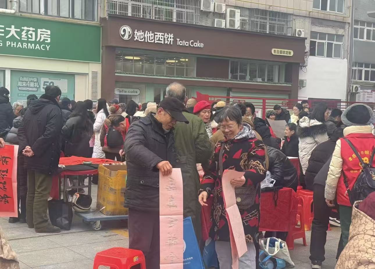活动现场,“孝小宣” 志愿服务队开展赠书送福活动,红马甲志愿者将书籍、春联、牡丹图送到居民手中,墨香里满是新春祝福。非遗展演区人气爆棚,市级非遗转糖人技艺亮相,老师傅用糖稀画出龙、凤、生肖等图案,吸引居民驻足,重温童年味道。此外,迷彩身影穿梭现场,守护节日安全。