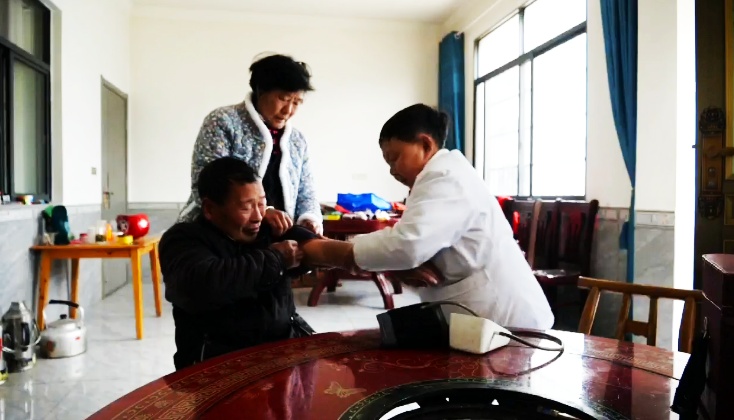 宜昌市秭归县两河口镇两河村59岁的村医王驹在卫生室为村民问诊。