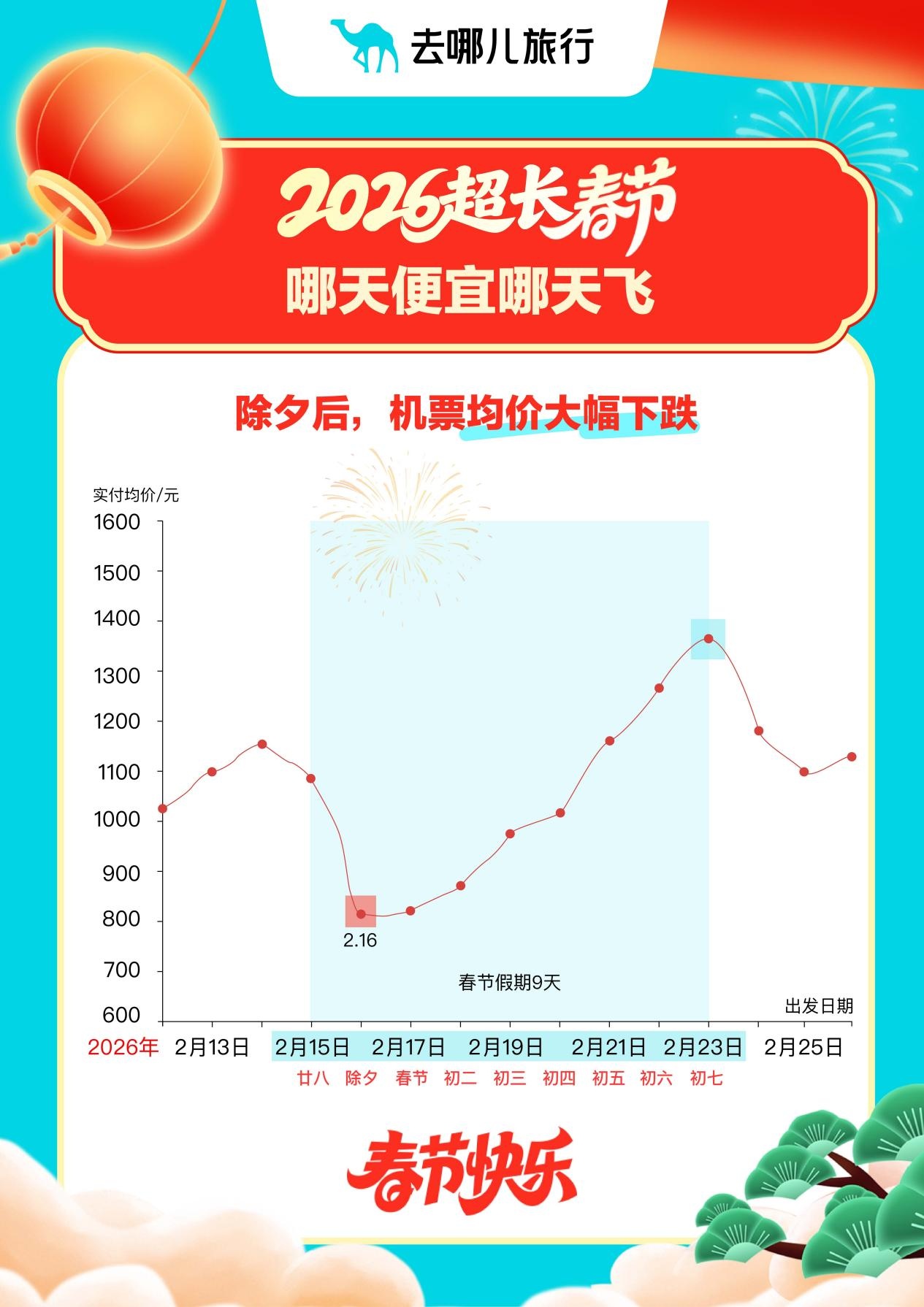 除夕后,国内机票均价大幅下跌。
