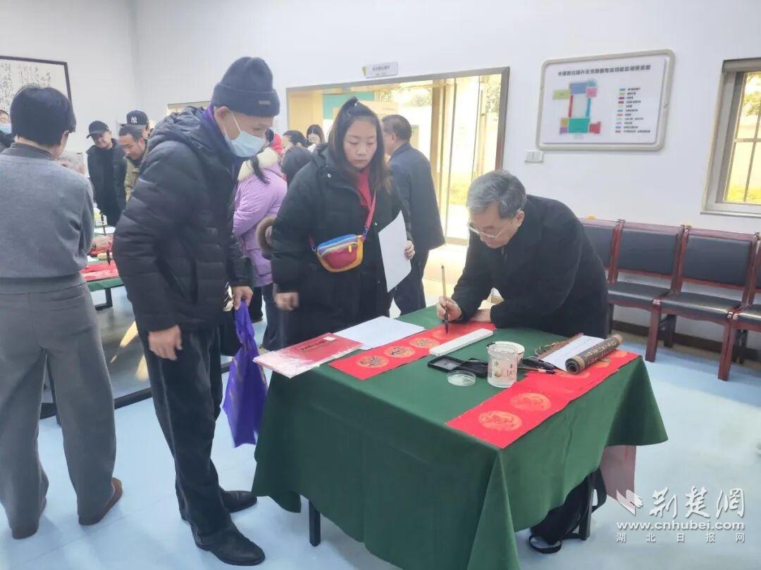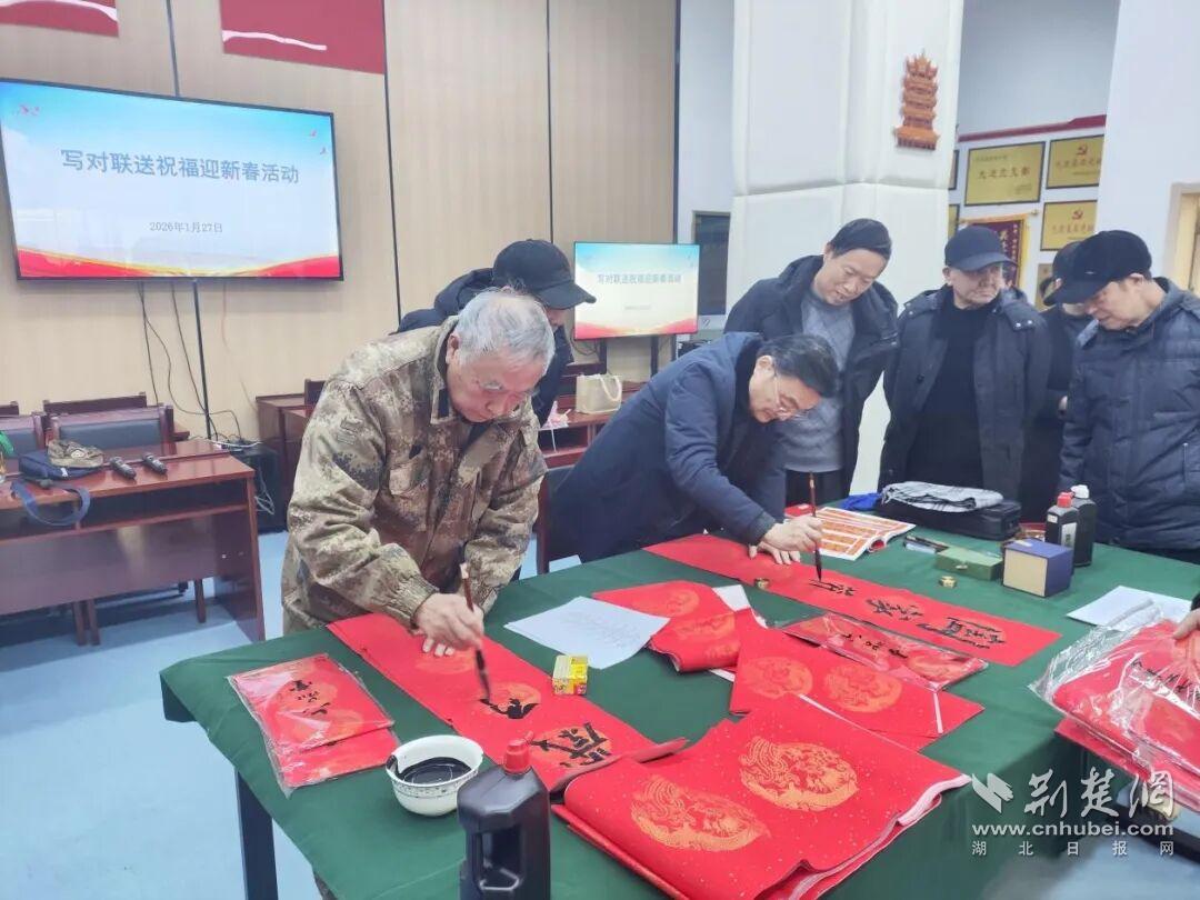 荆楚网(湖北日报网)讯(通讯员 肖雅文)岁末辞旧,春暖迎新。1月27日上午,武汉市军休八中心联合省住建厅、下徐家湾社区共同举办“写春联送祝福”主题活动。军休干部书法爱好者现场挥毫泼墨,为社区居民送上一幅幅饱含祝福的“年味儿大餐”,让这个寒冬充满了浓浓的年味与暖意。