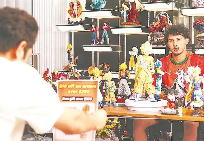 鄂州跨境电商产业园,来自巴基斯坦、摩洛哥的主播们在TikTok直播间向美国粉丝推介手办。(湖北日报全媒记者 薛婷 摄)