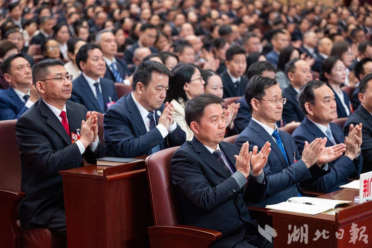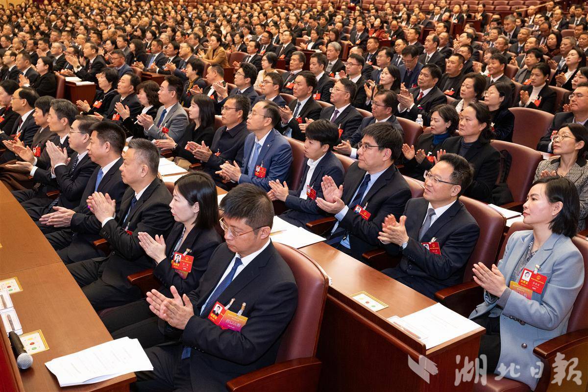 1月31日,省十四届人大四次会议闭幕会现场,省人大代表们热烈鼓掌。(湖北日报全媒记者 任勇 摄)