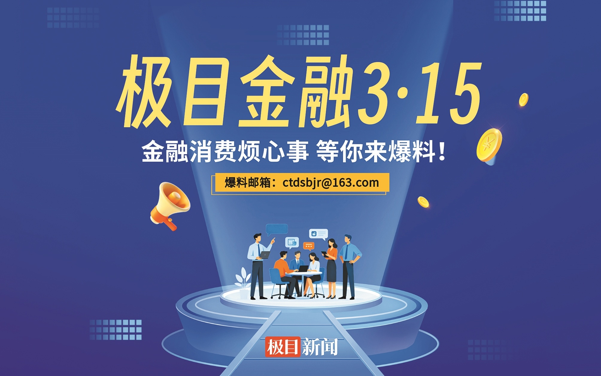 为切实回应消费者关切,即日起,极目新闻正式开通2026年度“极目金融3·15”征集通道。无论您遇到的是银行卡盗刷、保险理赔难、贷款捆绑销售、理财产品收益不达标、证券服务纠纷,还是个人信息泄露、不明扣费、互联网平台金融产品“爆雷”等问题,均可通过以下方式联系我们:投诉邮箱ctdsbjr@163.com;热线电话027-86777777(爆料时请说明转极目金融3·15栏目组)。