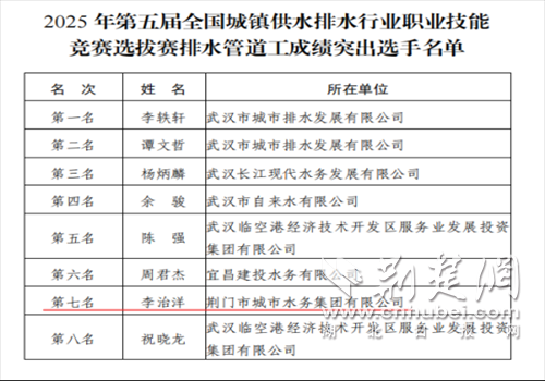 荆楚网(湖北日报网)讯(通讯员 李婧楠 龚存)近日,第五届全国城镇供水排水行业职业技能竞赛湖北省选拔赛圆满落幕,荆门市城市水务集团有限公司凭借优良作风与出色表现,成功斩获“道德风尚奖”,参赛选手亦在竞赛中奋勇争先,收获多项个人佳绩。