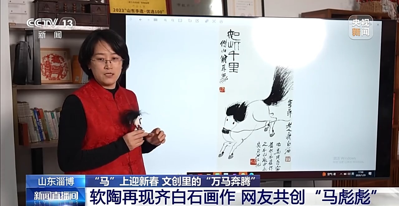 “马彪彪”创意团队的设计师之一——王枝,是淄博泥塑(软陶制作)非物质文化遗产项目市级代表性传承人。在齐白石的众多画作中,她最终选定了《如此千里》里这匹神采飞扬的奔马作为创作蓝本。