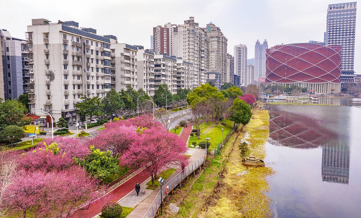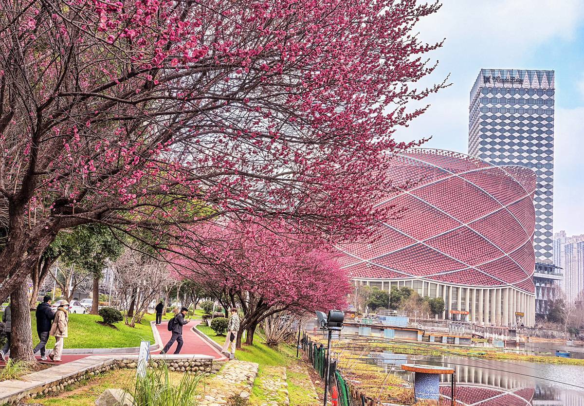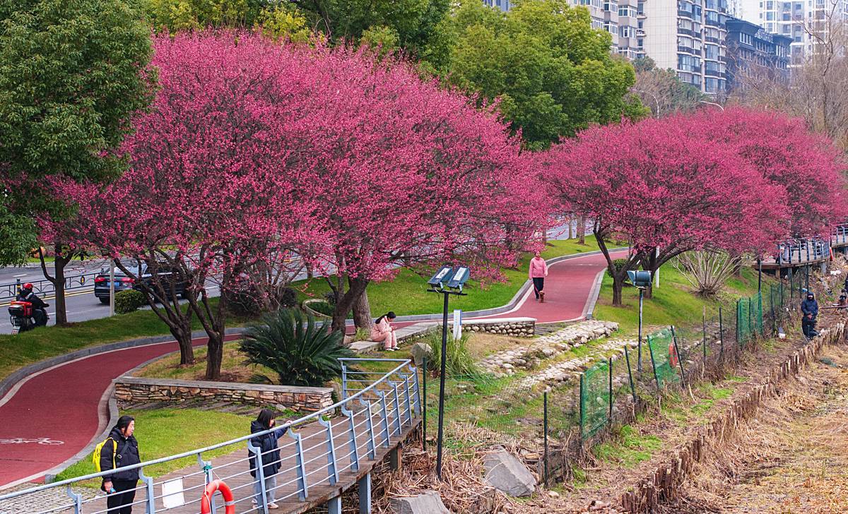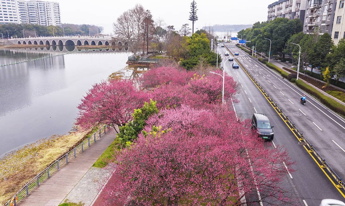 2月1日,位于武昌区白鹭街一旁、水果湖畔的梅花悄然进入盛花期。