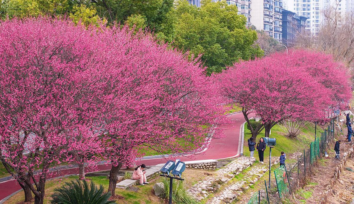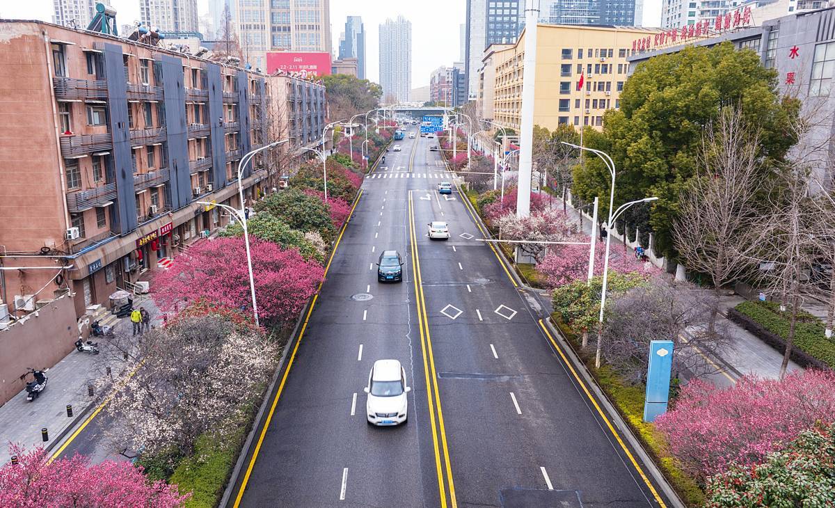 2月1日,位于武汉武昌区白鹭街两旁的梅花悄然进入盛花期。